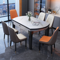 艺可恩岩板餐桌椅组合现代简约轻奢吃饭桌子伸缩折叠可变圆桌家用小户型