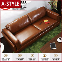 苏宁放心购北欧沙发小户型真皮工业风loft现代简约双人三人头层牛皮羽绒沙发A-STYLE家具