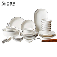 富昱景 北欧简约陶瓷碗碟套装网红家用餐具套装碗盘碗筷黑线51头