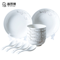 富昱景 碗碟套装 家用陶瓷餐具套装 景德镇 骨瓷碗盘中式碗筷送礼 28件
