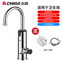 志高电热水龙头速热即热式加热厨房宝快速过自来水热电热水器家用 银色大弯插头款 ABS塑料 厨房卫生间通用款 下进水