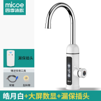 皓月白[大屏数显+漏保插头] 厨房款 下进水 四季沐歌电热水龙头即热式快速过水热冷热两用厨房卫生间小厨宝