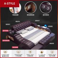 苏宁放心购现代皮床简约主卧真皮双人1米8软体大床多功能按摩榻榻米婚床A-STYLE家具
