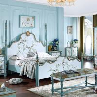 苏宁放心购网红抖音同款美式实木床田园风地中海彩绘公主双人床蓝色1.8米1.5A-STYLE