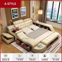 苏宁放心购真皮床现代简约主卧床实木1.8米皮床榻榻米双人床多功能智能婚床A-STYLE家具