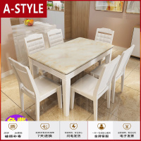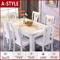 苏宁放心购简欧白色玉大理石餐桌椅组合长方形实木饭桌家用一桌4人椅6椅A-STYLE