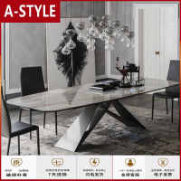 苏宁放心购意式轻奢岩板餐桌椅组合现代简约长方形北欧大理石家用小户型饭桌A-STYLE