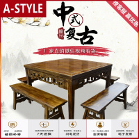 苏宁放心购(定制现做)新中式复古四方桌子大理石餐桌饭店户外家用饭桌碳化实木大八仙桌(具体运费请咨询)A-STYLE