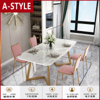 苏宁放心购北欧轻奢大理石餐桌椅组合不锈钢餐桌长方形小户型后现代简约饭桌A-STYLE