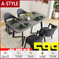 苏宁放心购岩板餐桌椅组合灰色轻奢现代简约北欧大理石长方形小户型家用饭桌A-STYLE