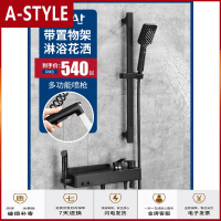 苏宁放心购黑色淋浴花洒套装家用全铜浴室淋雨喷头卫生间沐浴卫浴器洗澡龙头A-STYLE