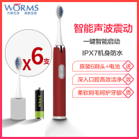 worms电动牙刷成人全自动声波防水软毛男女士学生党情侣牙刷 茶靡红一档位电池款配(6刷头+5号干电池)