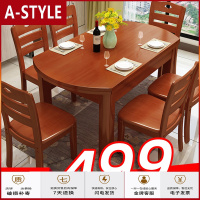 苏宁放心购实木餐桌椅组合现代简约伸缩折叠餐桌小户型方圆两用圆形吃饭桌子A-STYLE家具