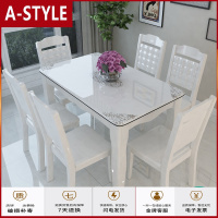 苏宁放心购白色餐桌椅组合现代简约长方形小户型4人6实木家用大理石吃饭桌子A-STYLE