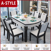 苏宁放心购大理石餐桌椅组合实木简约现代小户型伸缩折叠方圆形家用吃饭桌子A-STYLE家具