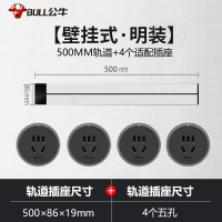 公牛(bull)0.5米银色轨道+4个5孔适配器组合可移动电力轨道插座厨房专用无线滑轨接线板家用插排插座