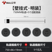 公牛(bull)0.75米银色轨道+6个五孔适配器组合可移动电力轨道插座厨房专用无线滑轨接线板家用插排插座