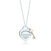 TIFFANY&CO.蒂芙尼经典S925银爱心钥匙项链项链女桃心吊坠锁骨链