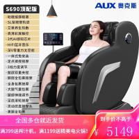 [腰背艾草热敷]奥克斯(AUX)按摩椅家用全身小型电动太空舱全自动家用型老人颈椎腰背按摩沙发S690 顶配黑+7寸触控屏
