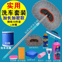 新款洗车刷子工具长柄伸缩纯棉软毛擦车拖把专用拖把洗车套装组合家用 灰色棉线10件套水桶 抖音