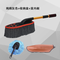 新款汽车掸子棉线洗车刷子擦车用除尘蜡拖把伸缩扫灰软毛汽车用品工具 灰色蜡刷收纳包室内刷 抖音