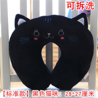 卡通U型枕可爱U型枕头护颈枕旅行护脖子颈椎枕办公室午睡枕护腰垫 猴子大红33*30厘米 [标准款]黑色猫咪28*27厘米