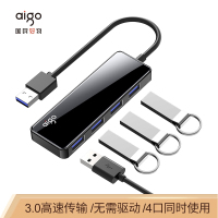 爱国者(aigo)USB分线器3.0高速扩展一拖四多接口 笔记本台式电脑拓展坞键盘鼠标HUB转换器H4JD镜面黑