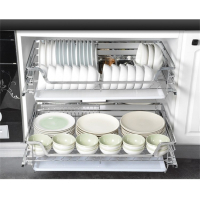 HIGOLD/悍高 拉篮厨房橱柜拉篮抽屉式双层碗碟篮置物架太空铝收纳架