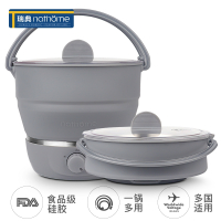 北欧欧慕(nathome)A5折叠电煮锅旅行便携式多功能温度调节防干烧迷你煮面宿舍学生单身野营锅小电火锅 灰色