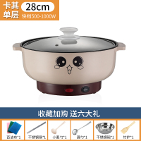 电煮锅多功能学生宿舍用电炒菜锅家用寝室煮面小电锅火锅1-2人3-4 28CM卡其色单层加厚4-6人