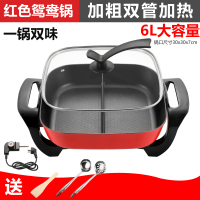 纳丽雅(Naliya)鸳鸯电火锅多功能电煮锅家用火锅电热方形宿舍一体不粘锅定制 方双管鸳鸯锅红色送汤漏勺