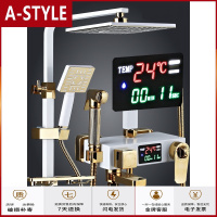 苏宁放心购卫浴欧式淋浴花洒套装卫生间淋浴器黑金色智能恒温数显花洒A-STYLE