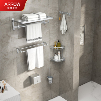 箭牌(ARROW)卫浴五金毛巾架 毛巾架卫生间 浴巾架免打孔粘胶 浴室挂件套装 太空铝置物架壁挂AE5629TZ-6P