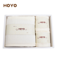 HOYO 浴巾毛巾礼盒套装 日本进口A类纯棉毛巾礼品毛巾浴巾3件套 乳白色 长绒棉系列 2毛巾+1浴巾 33*7
