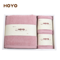 HOYO 浴巾毛巾礼盒套装 日本进口A类纯棉毛巾礼品毛巾浴巾3件套 浅粉色 长绒棉系列 2毛巾+1浴巾 33*7