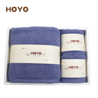 HOYO 浴巾毛巾礼盒套装 日本进口A类纯棉毛巾礼品毛巾浴巾3件套 浅灰色 长绒棉系列 2毛巾+1浴巾 33*7