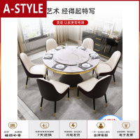 苏宁放心购现代简约白色轻奢大理石圆形餐桌椅组合带电磁炉实木圆桌家用10人A-STYLE