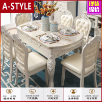 苏宁放心购大理石欧式餐桌椅组合小户型客厅家具多功能伸缩饭桌家用圆桌实木A-STYLE