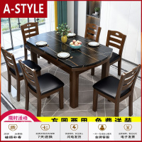 苏宁放心购大理石餐桌椅组合现代简约可伸缩折叠家用小户型全实木岩板圆饭桌A-STYLE