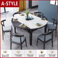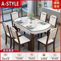 苏宁放心购大理石餐厅实木餐桌折叠餐桌椅组合伸缩钢化玻璃电磁炉圆形饭桌子A-STYLE家具