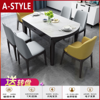 苏宁放心购大理石实木餐桌椅组合现代家用简约可伸缩折叠6人吃饭桌子小户型A-STYLE