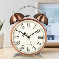 汉时欧式金属夜灯石英闹钟卧室复古装饰时钟家用大音量床头座钟HA41