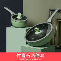 炊大皇锅具套装不粘锅麦饭石炒锅家用锅两件四件套厨房全套锅具不粘锅组合燃气电磁炉锅竹青石两件套(炒锅煎锅)