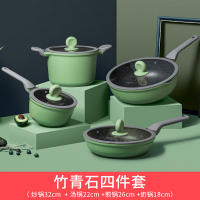 竹青石4件套(炒锅30CM+煎锅26CM+汤锅22CM+奶锅18CM) 炊大皇三件套锅具套装家用厨房平底锅不粘奶锅燃气电