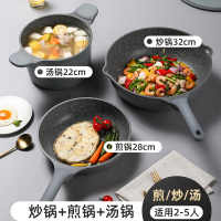 星空灰三件套[适用2-5人][煎/炒/汤] 炊大皇锅具套装麦饭石不粘锅四件套组合家用炒锅电磁炉燃气通用
