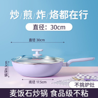 紫灰色30cm 炊大皇麦饭石不粘锅炒锅家用炒菜锅小炒锅平底锅煎炒锅磁炉通用