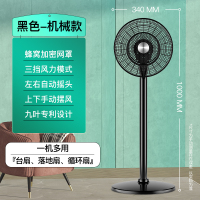 荣事达9叶电风扇落地大风量自动摇头风扇落地扇宿舍 黑色-机械款
