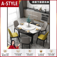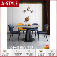 苏宁放心购可伸缩大理石圆形餐桌椅组合现代简约转盘实木岩板家用吃饭方圆桌A-STYLE