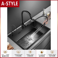 苏宁放心购洗菜盆双 厨房纳米水304不锈钢洗碗水池家用黑色洗碗池A-STYLE