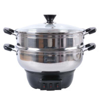32厘米内径 美的 多功能电热锅电炒锅2100W不锈钢双层电蒸锅430钢材质3档调温